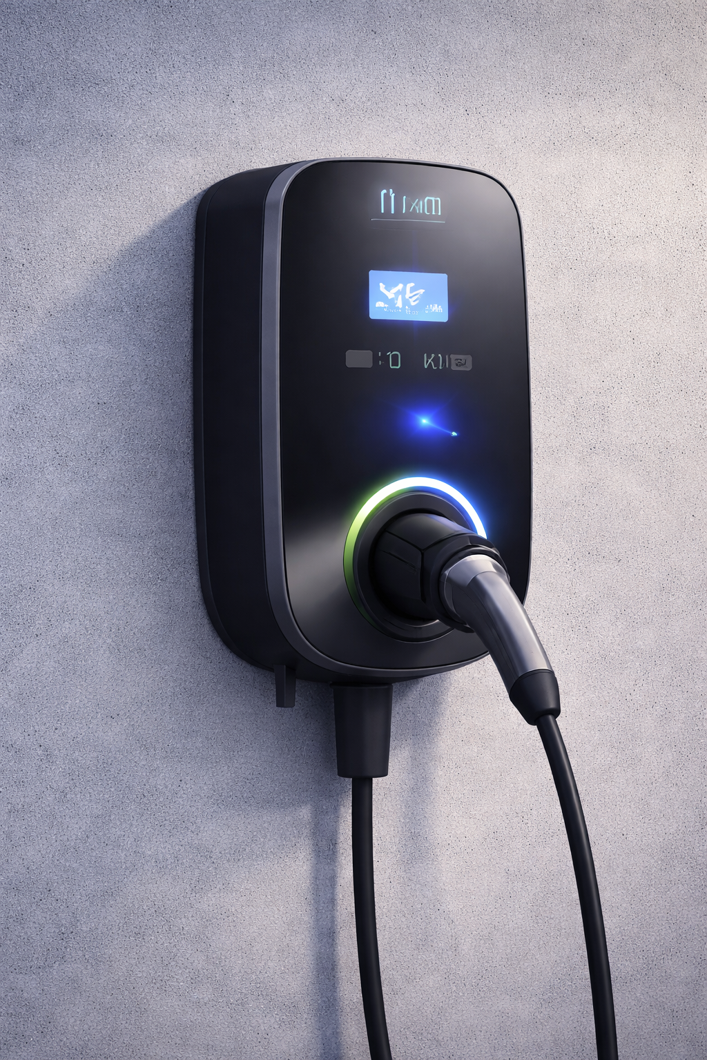 Elektromobil sa pripája k domácej nabíjacej stanici (wallboxu), ktorá riadi výkon, chráni inštaláciu a zabezpečuje bezpečné nabíjanie.